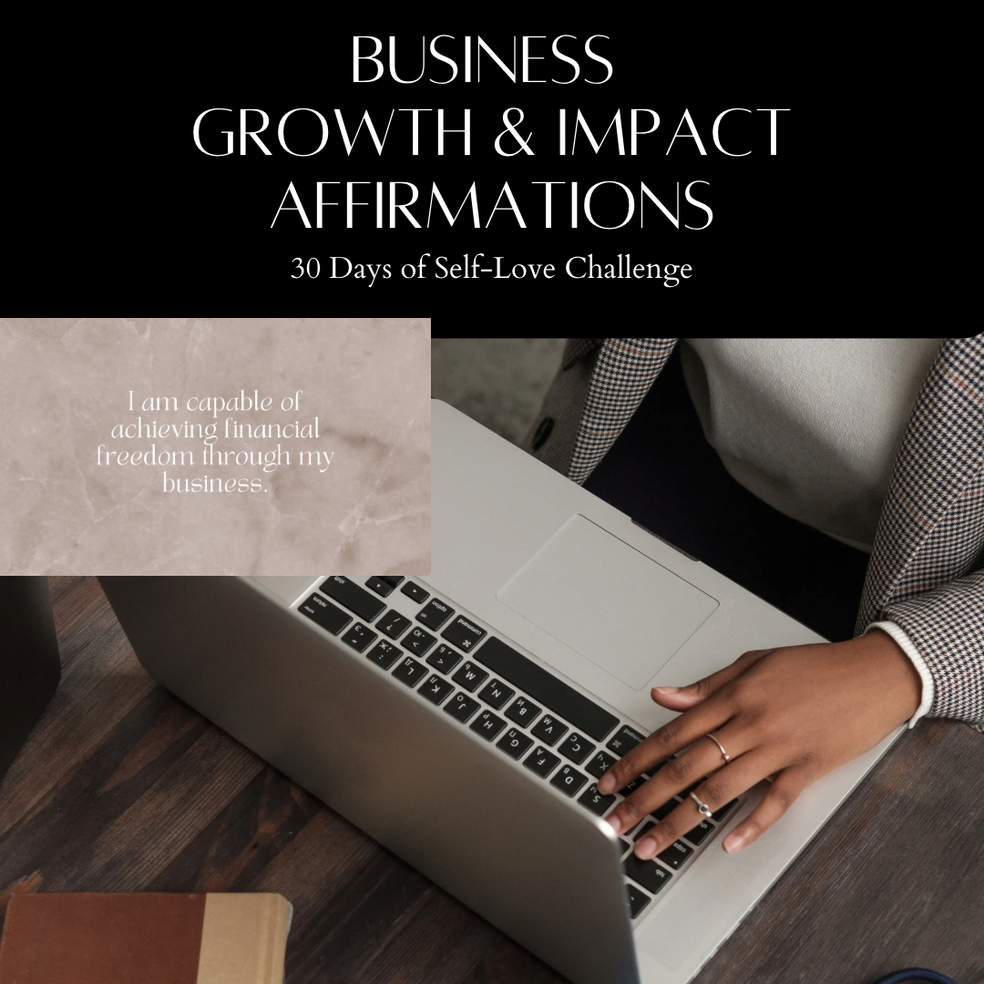 Business Growth & Impact Affirmations is a downloadable & printable pdf comprised of 30 affirmations for use daily to help you challenge and shift your perspective around your business and ultimately transform it's growth and impact by increasing your love for your business and yourself.
